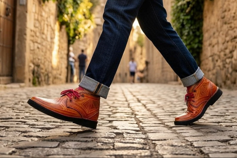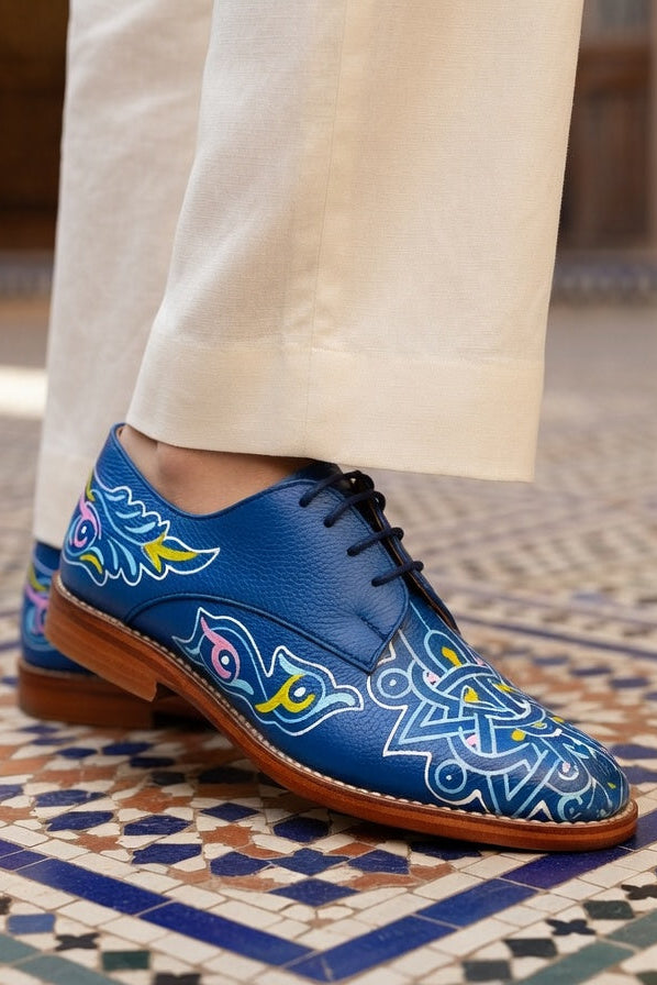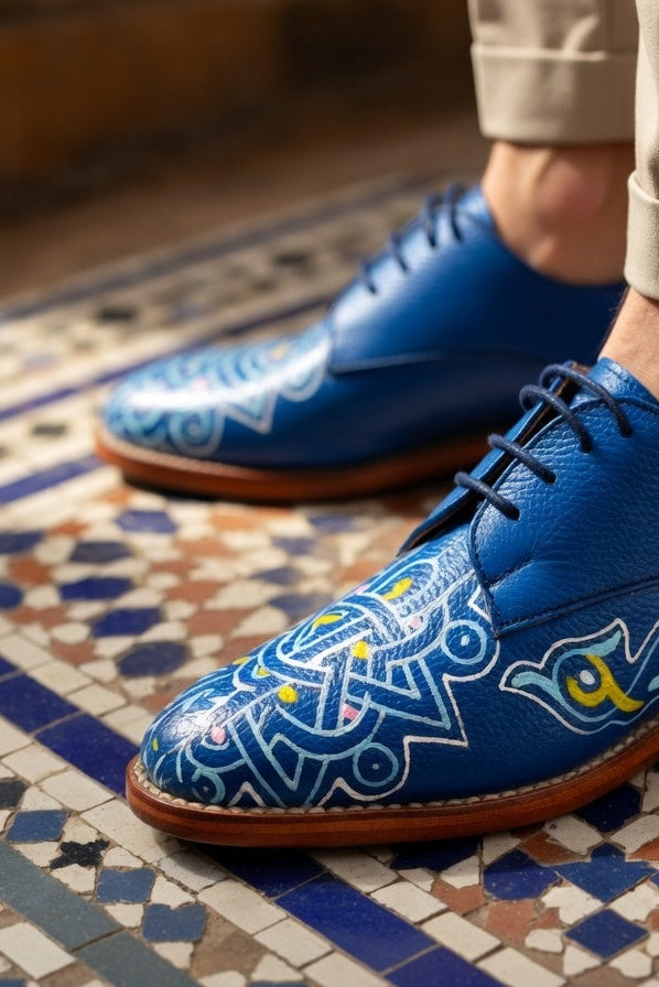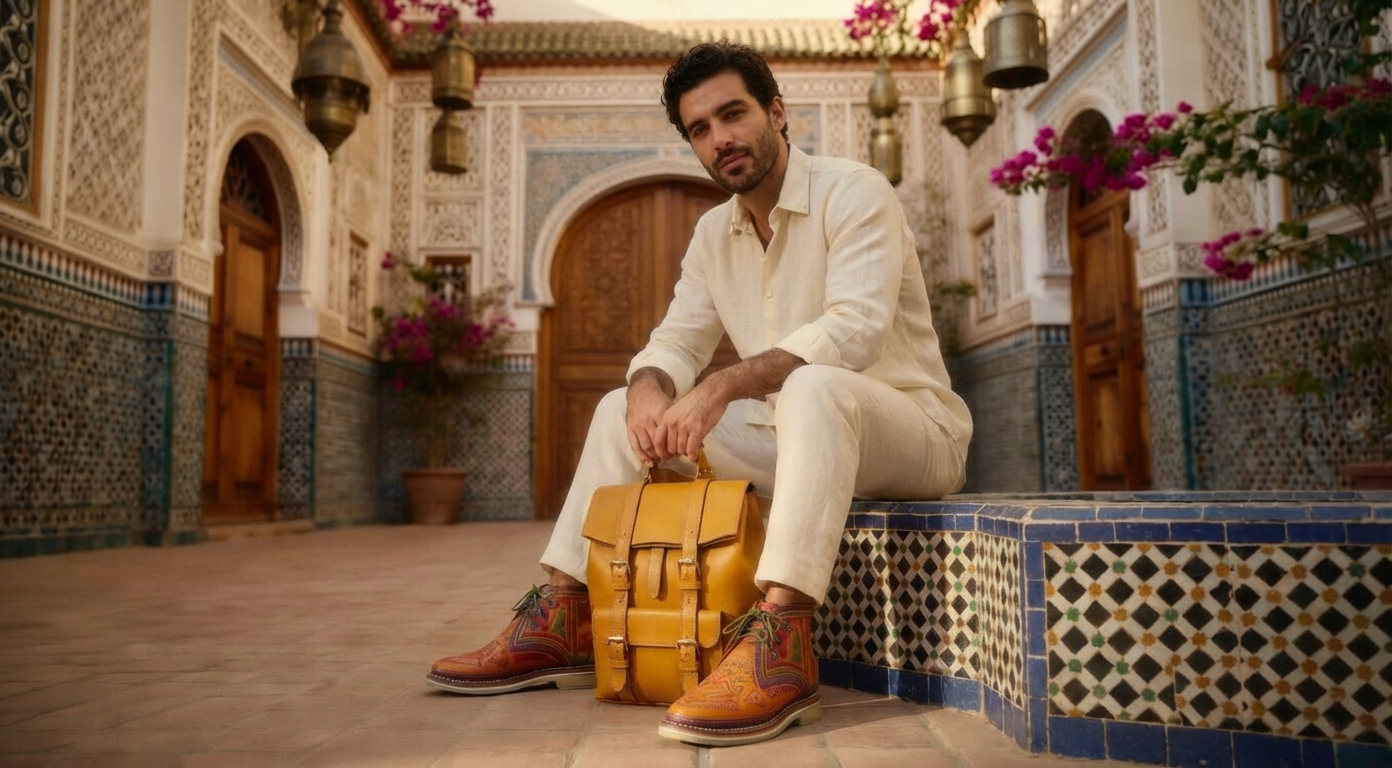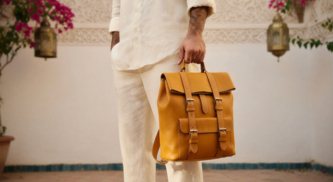 “Every piece is born in the souqs of Morocco and refined by hand over three days.Vegetable-tanned leather. Hand-painted details. Zero machines.We believe in quality that lasts, stories you can carry, and craftsmanship you can feel.”